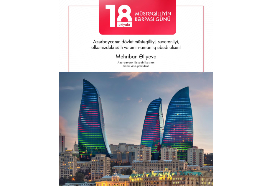Mehriban Əliyeva Müstəqilliyin Bərpası Günü ilə bağlı paylaşım edib