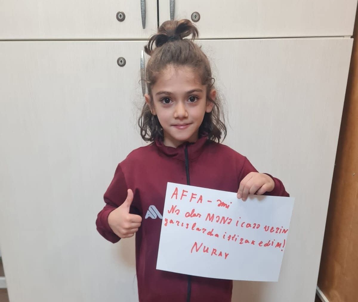 “Azərbaycan Futbol Federasiyaları Assosiasiyası (AFFA) uşaq futbolu ilə bağlı mühüm yeniliyə imza atıb. Sosial şəbəkələrdə 9 yaşlı Nurayın futbol sevgisi və onun oğlanlardan ibarət komandada oynamaq arzusu ilə bağlı paylaşımın ardından qurum məsələyə operativ reaksiya verib”.