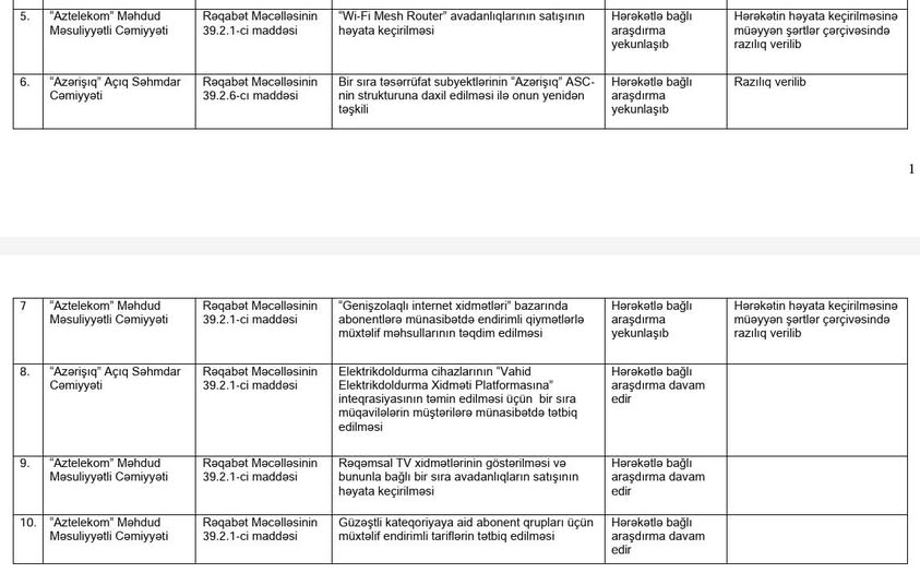 Maddə 39.3 və 39.6-ya görə, təbii inhisar subyekti (Aztelekom) qiymətlərin dəyişdirilməsi ilə bağlı rəqabət orqanından əvvəlcədən razılıq almalıdır. Antiinhisarın açıqlamasından belə qənaətə gəlmək olar ki , belə razılıq alınmayıb – bu, birbaşa pozuntudur.