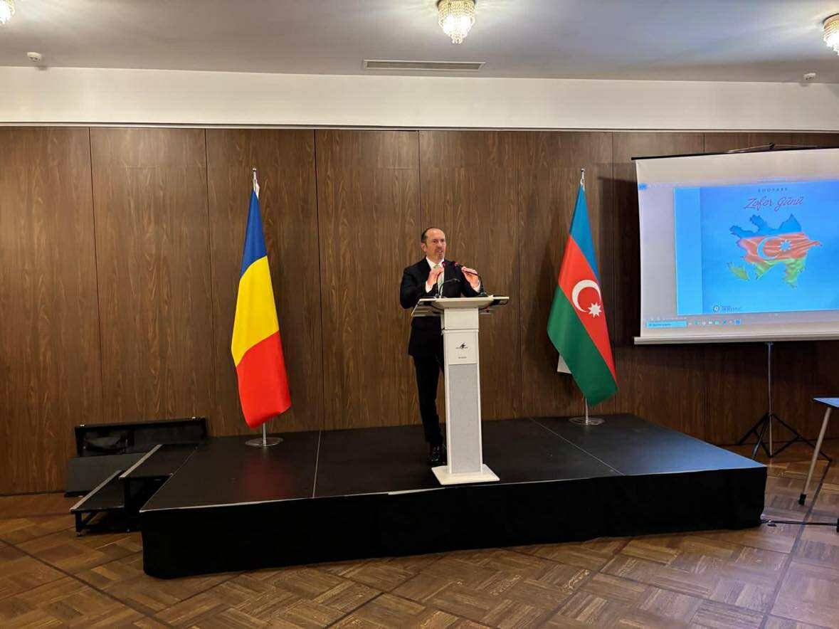 Tədbiri Azərbaycanın Rumıniyadakı səfiri Qüdsi Osmanov açaraq, Zəfər Gününün Azərbaycan xalqının milli qürur və iftixar günü olduğunu vurğulayıb. O bildirib ki, Azərbaycan Prezidenti, Müzəffər Ali Baş Komandan İlham Əliyevin rəhbərliyi ilə Azərbaycan Ordusu 2020-ci ilin 44 günlük Vətən müharibəsində tarixi ədaləti bərpa edib, ölkənin ərazi bütövlüyünü təmin edib.
